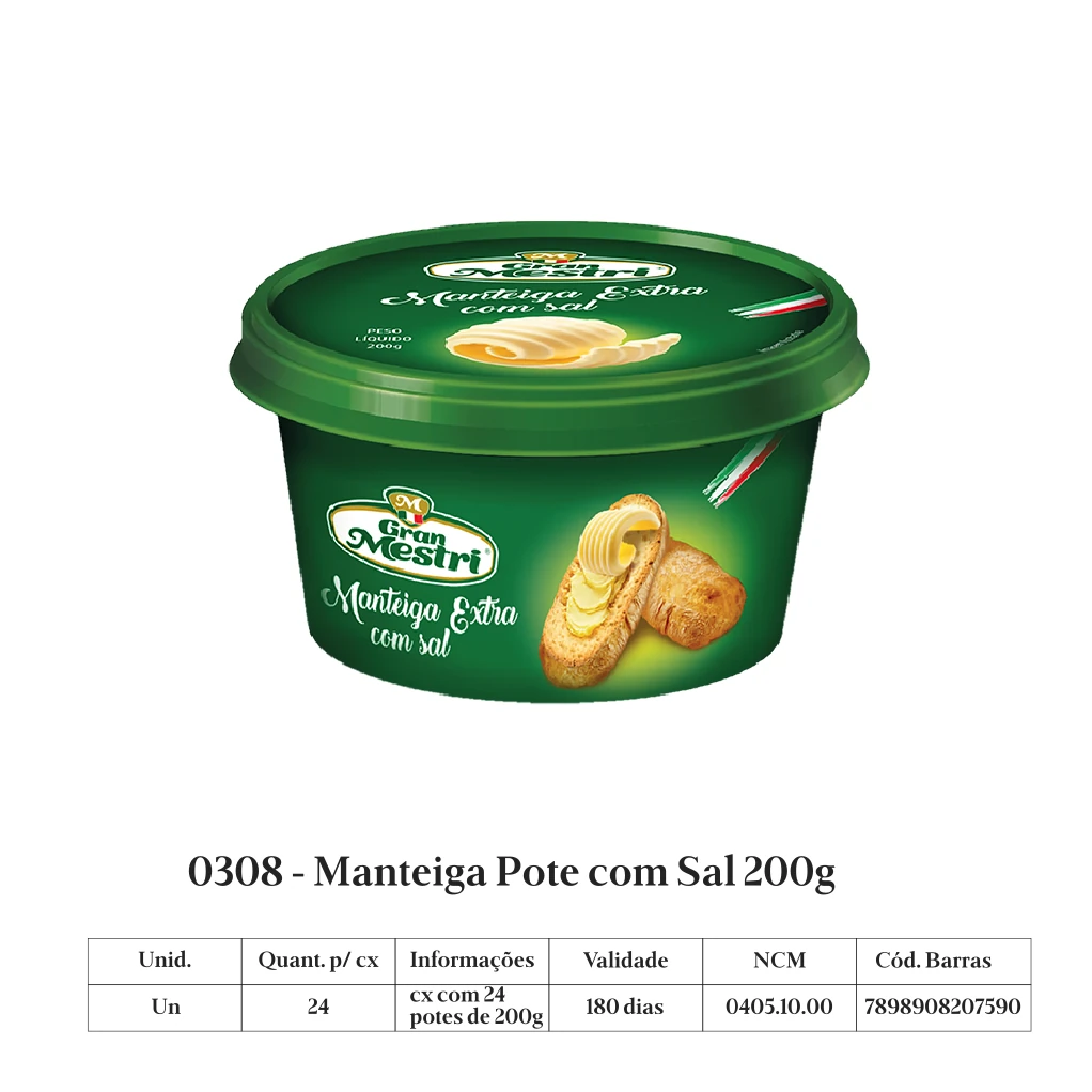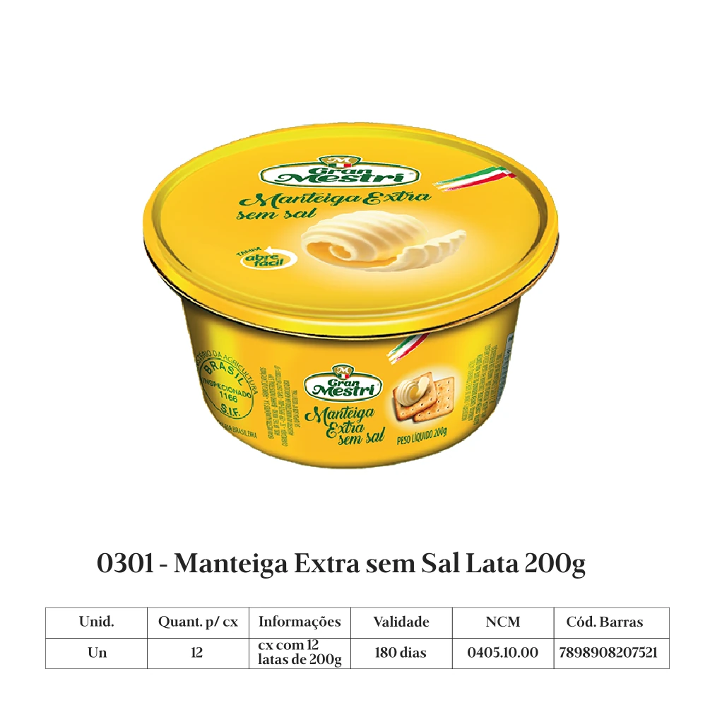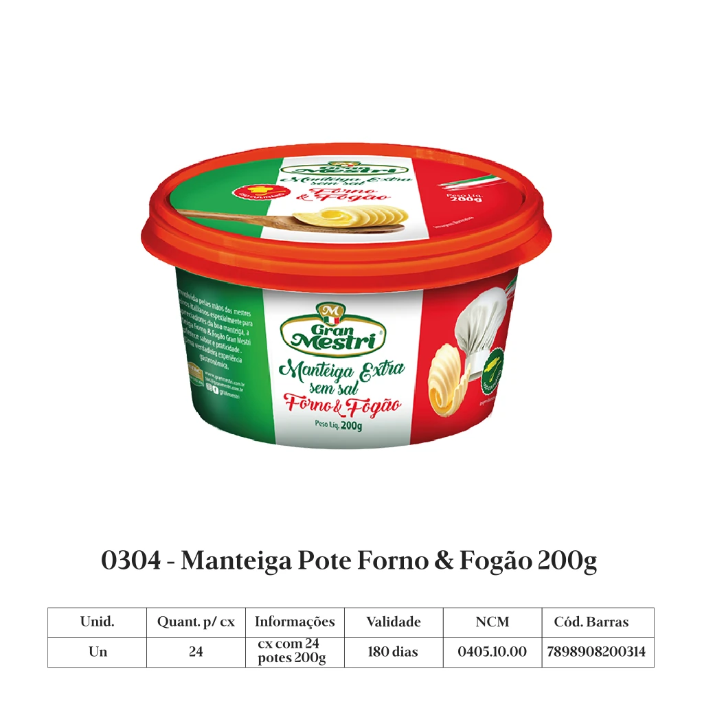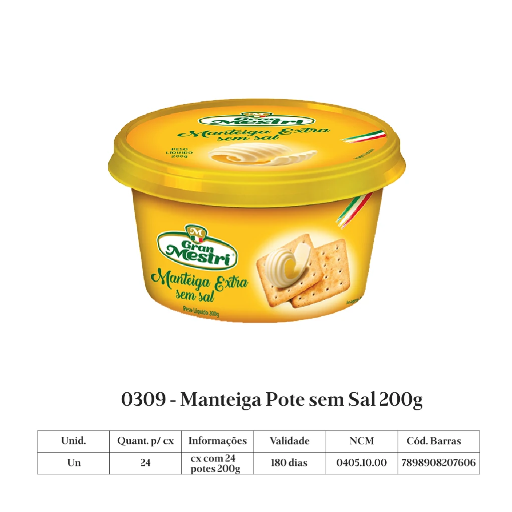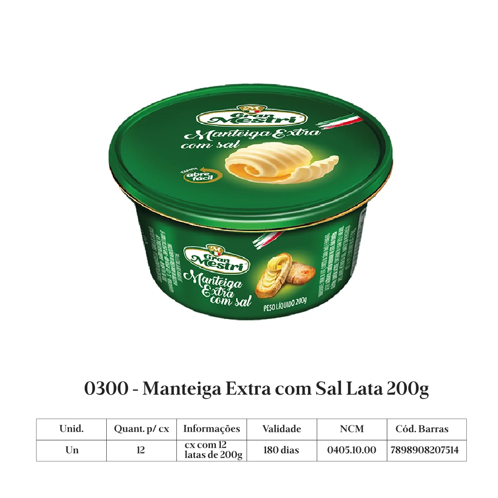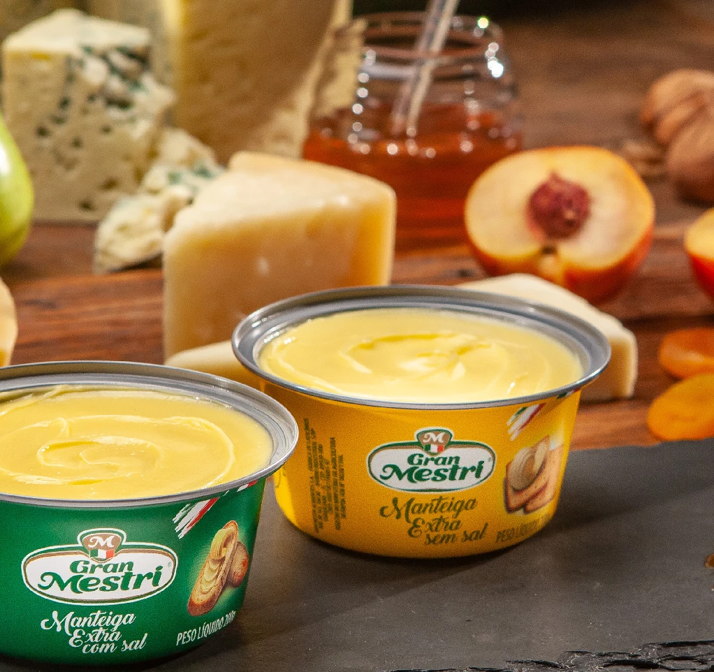 A manteiga Gran Mestri é produzida a partir de uma receita italiana exclusiva, com leite de padrão internacional de qualidade, sem adição de conservantes.
