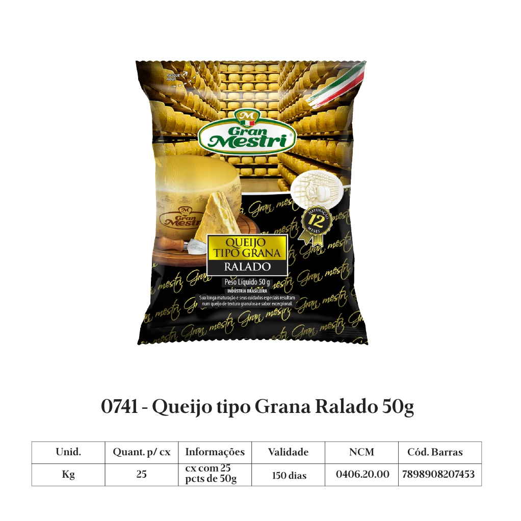 Na Gran Mestri, seguimos o processo tal qual os mestres queijeiros italianos, em que o tempo é o protagonista e os queijos ficam entre 12, 24 e 36 meses maturando até chegarem em seu estado perfeito.